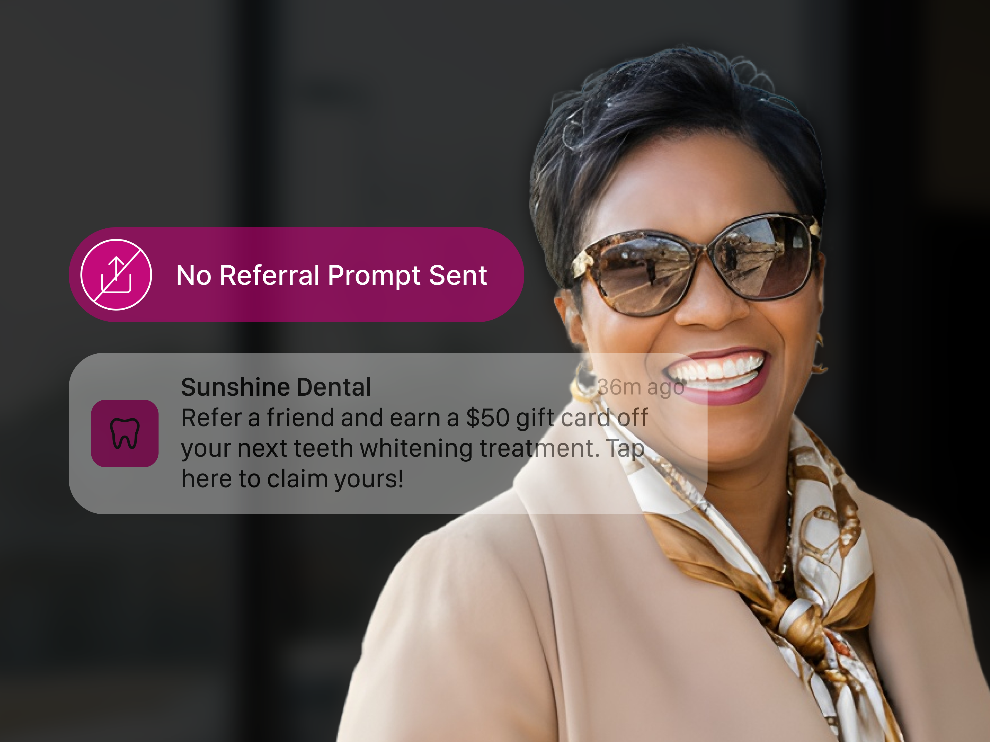 Patients receive referral prompts at the exact moment they feel the most satisfied. AI identifies your happiest patients and delivers the perfect ask automatically. You consistently generate 10–40+ new referral leads every month.